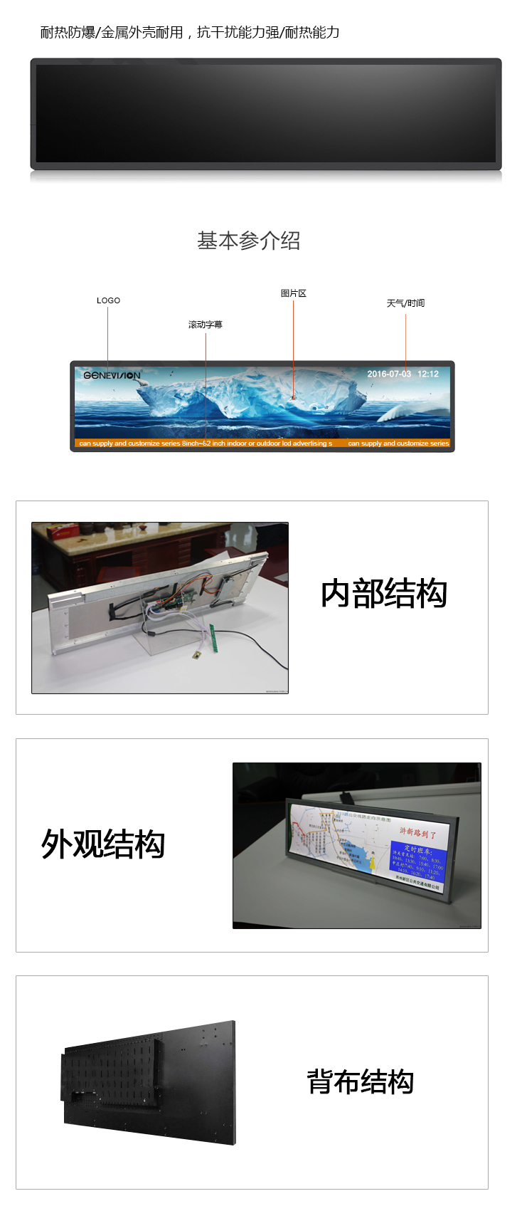 如今,隨著液晶顯示技術的發(fā)展,出現(xiàn)了新型的長條液晶產(chǎn)品,長寬比例超過3:1的液晶長條屏廣泛應用于各行業(yè)領域,在市場上大受好評。