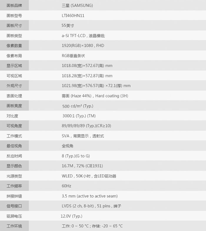 液晶屏尺寸 55 寸TFT真彩液晶屏
