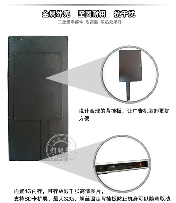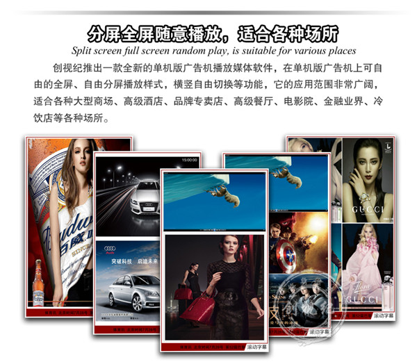 對比性 | 看家本領(lǐng): ★成本低,能滿足常規(guī)的廣告機(jī)播放功能; ★高清1080P視頻、圖片播放; ★一鍵拷貝節(jié)目、支持 HDMI接口輸入,可當(dāng)顯示器之用。不足之處:豎屏片源需要第三方軟件制作、剪輯。分屏制作繁瑣。 | 看家本領(lǐng): ★解決客戶橫豎屏轉(zhuǎn)換問題,可自動(dòng)對應(yīng)機(jī)器旋轉(zhuǎn)視頻; ★內(nèi)置4G內(nèi)存,烤貝快、播放穩(wěn)定、永不卡殼; ★真正客戶自由分屏,真正的實(shí)現(xiàn)視頻,圖片,字幕,日期的隨機(jī)組合;想怎么分就怎么分; ★目前唯一能真正實(shí)現(xiàn)節(jié)目之間的無縫切換的方案; ★疊加背景圖片,使畫面更美觀; ★雙芯片、真正1080P的全高清解碼;目前只有我們和分眾傳媒使用此方案。 | 看家本領(lǐng): ★遠(yuǎn)程控制、管理、下發(fā)節(jié)目; ★兼容更多格式,天氣預(yù)報(bào)等,內(nèi)容豐富,操作so easy! ★后臺軟件功能強(qiáng)大,關(guān)鍵點(diǎn)是穩(wěn)定,支持同時(shí)上萬終端在線; ★隨機(jī)搭配服務(wù)器安裝軟件; ★擴(kuò)展性強(qiáng)、可安裝任意APP,滿足你的任何任性; ★支持阿里云服務(wù)器,強(qiáng)大的技術(shù)支持。真正的廣告媒體運(yùn)營最佳選擇,穩(wěn)定壓到一切。不足之處:暫時(shí)沒有(這個(gè)可以有,這個(gè)真沒有...) |