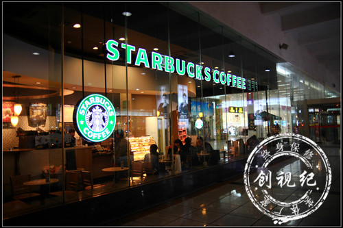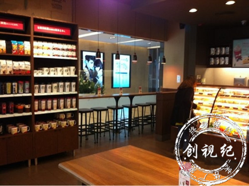 創視紀廣告機應用在星巴克咖啡的項目實拍照片: