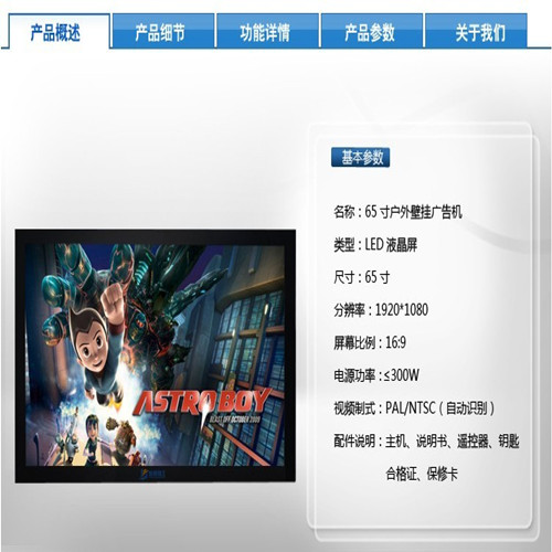 產(chǎn)品具備各種惡劣環(huán)境中使用的各項(xiàng)優(yōu)異特性及良好的可靠性,可廣泛適用于戶外廣場(chǎng)、電子站臺(tái)、大型超市連鎖店、體育場(chǎng)館、機(jī)場(chǎng)等戶內(nèi)外環(huán)境的媒體圖像播放等。