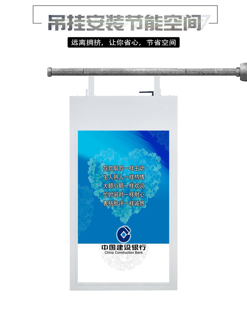 43寸建行櫥窗雙面屏吊裝廣告機(jī)