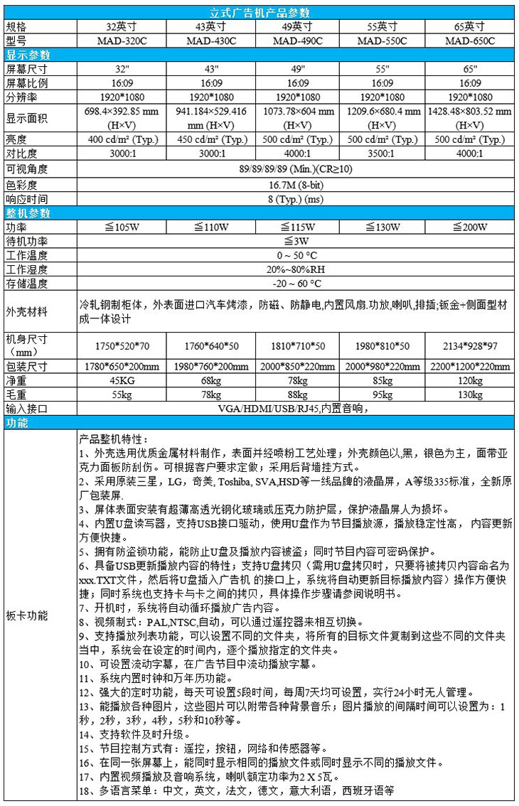 32/42/43英寸落地式廣告機