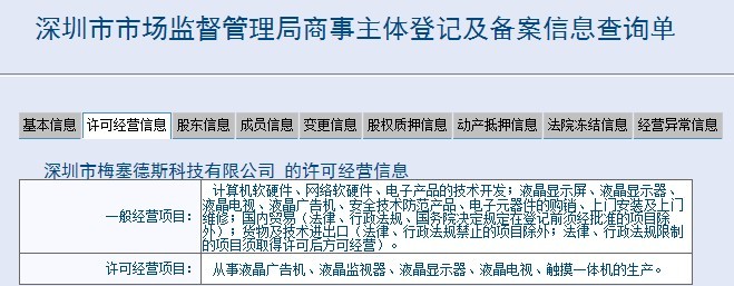 經營范圍加入“許可經營項目” 從事液晶廣告機、液晶監視器、液晶顯示器、液晶電視、觸摸一體機的生產。