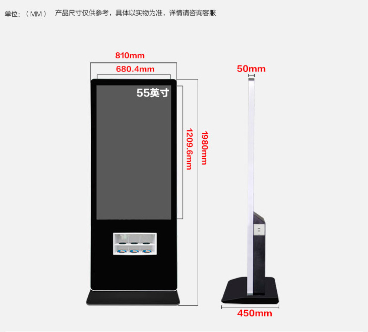 液晶面板 | 尺寸 | 55寸(可定制) |