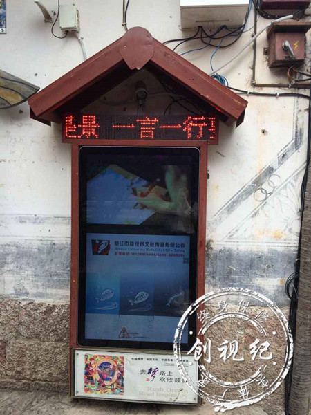 近日,有朋友到云南麗江游玩,有走于大街小巷,口干舌燥之際來到一個酸奶店,引入眼簾的酸奶店是一個西式古典的裝扮,統一的乳白色樣調,當朋友看到如此溫馨的店家,旁邊豎立著的是一款直角廣告機,目測在46寸左右,廣告機后面的名牌顯示的即是深圳梅塞德斯科技有限公司生產,創視紀品牌廣告機,看來創視紀廣告機已經深入人心,作為廣告機生產廠家,深圳梅塞德斯科技已經成立12年了,出廠的廣告機已經是數不清,我們的宗旨是做最后的產品回饋大眾,歡迎大家前來訂購!
