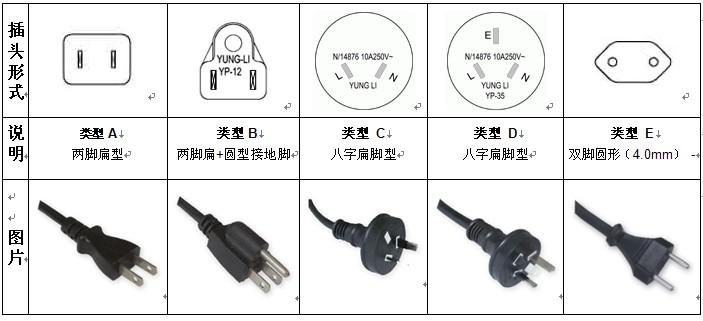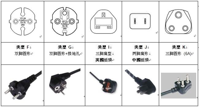 圖一(核心提示: 世界各國(地區)插頭型式說明