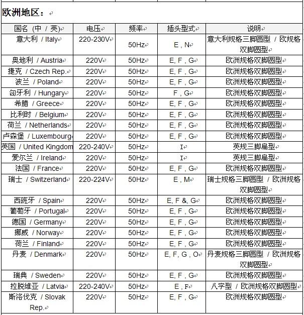 1、 世界各國電壓概況: